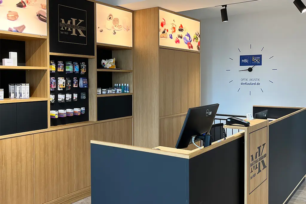 Die zeitgemäße Gestaltung und Raumplanung repräsentieren die Zukunft der Kaulard-Filialen. Fortschrittliche Technologie, eine behagliche Atmosphäre und bewährte Fachkenntnisse garantieren eine erstklassige Betreuung unserer Hörakustik-Kunden.